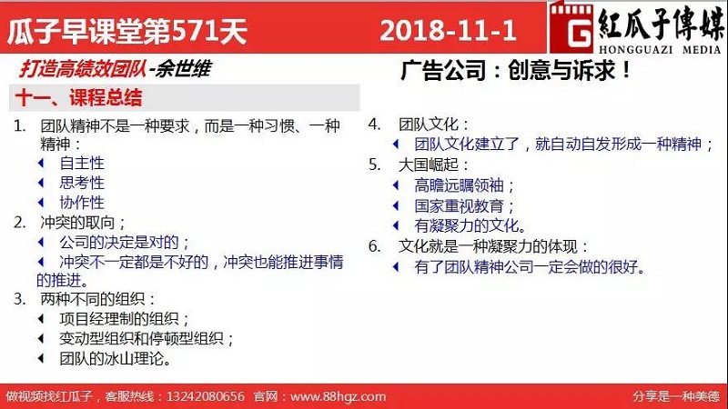 红瓜子传媒首页>相关资讯>最新动态>瓜瓜早课堂第571期-打造高绩效团队课程总结