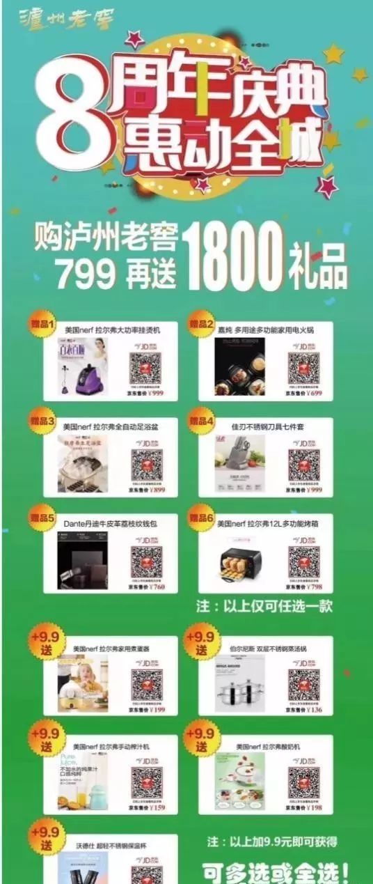 安徽淮安泸州老窖8周年庆典,买买买,+9.9元任性送,客户想不到的惊喜,让爱酒的朋友根本停不下来,三天轻松成交30多万。