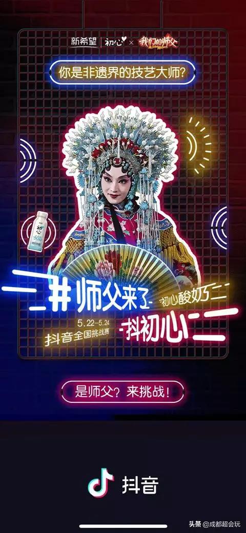 在成为大张伟、刘宇宁、董思成、于晓光、凯丽、倪萍、赵忠祥等明星指定饭桌饮品和下午茶之后,初心酸奶又转战抖音,发起一次全国寻找师父的挑战赛#师父来了抖初心,将节目IP的营销价值最大化,再次赚足了曝光。