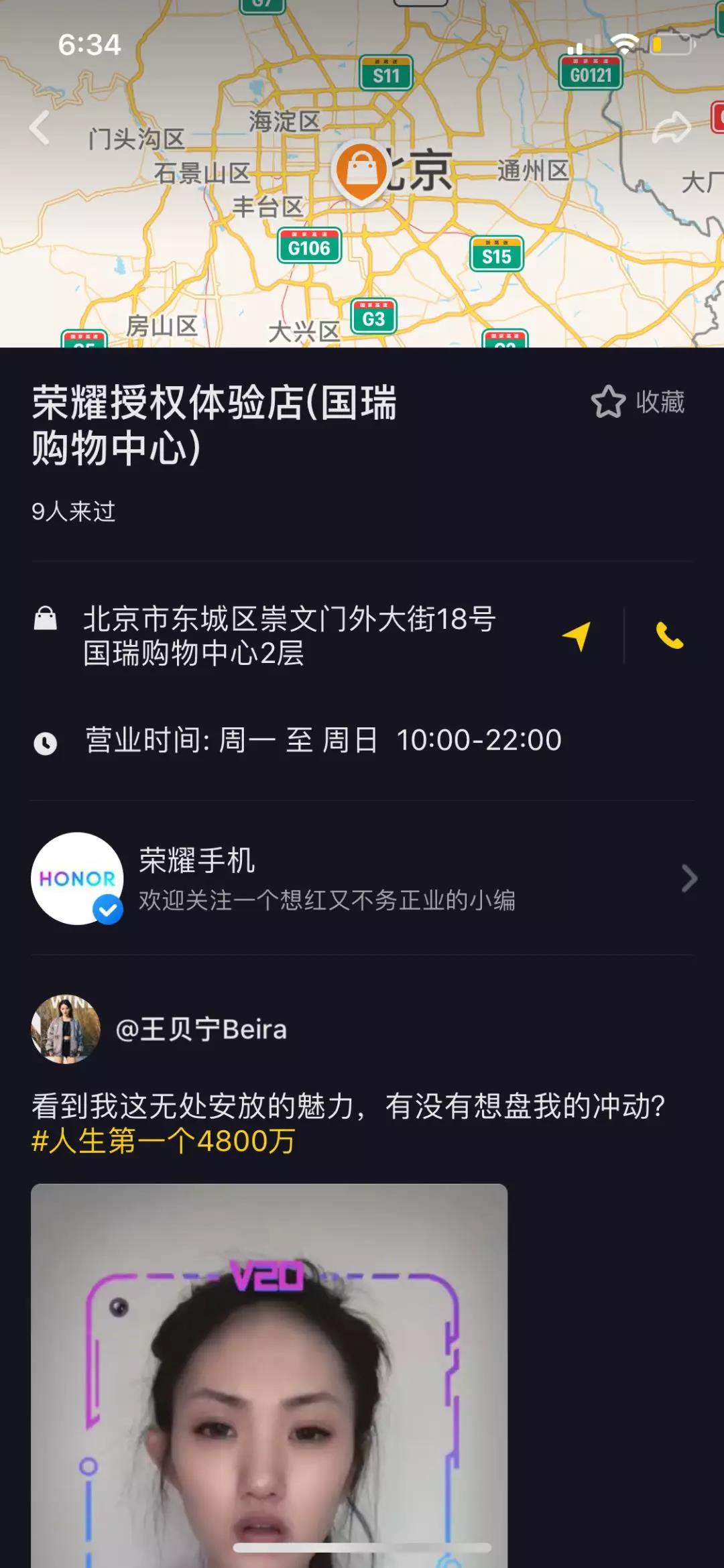 品牌曝光的最终目的是实现产品售卖。过去,品牌营销往往将线上与线下分开,线上传播与线下转化存在天然断层。抖音作为一个成熟的全链路营销平台,有着众多线下转化组件如POI(Point Of Interest)。本次荣耀手机的挑战赛项目中,正是利用POI这一强效组件,在荣耀手机#人生中的第一个4800万 挑战赛视频中添加POI信息入口,引导用户在浏览视频的同时了解POI店铺相关信息。推动用户种草店铺,加速用户线下消费决策,将线上品牌扩散与线下门店转化充分结合起来。