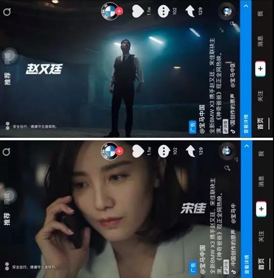 今年情人节,宝马更是搭载抖音年度重磅新品Top view开启全球首秀,广告视频前3秒以开屏形式呈现,3秒后则无缝衔接信息流展示完整品牌TVC,优质无干扰的曝光环境带来沉浸感官体验。狂揽1.1亿总曝光量,超1466万总点击,点击率达13.26%。Top view颠覆传统的展现形式与互动路径为宝马狂揽10.5万粉丝,创近半年来增粉效率最高记录。