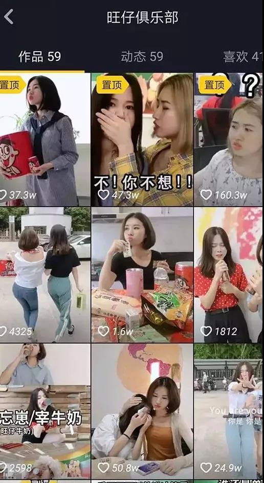 旺仔的抖音,主角是一对闺蜜,抖音的剧本设定也围绕女性之间的工作生活展开。比如喜欢P朋友丑照的闺蜜,刚认识的矜持和熟悉之后的粗犷的先后对比等。内容脑洞大,新奇好玩,粉丝粘性比较强。