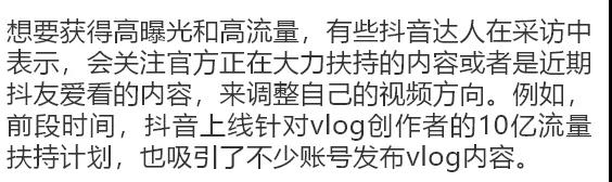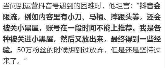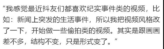 对此,不少抖音达人都提到几点,一是优质内容,做能引发观众共鸣的视频;二是多做系列视频,给观众一定的期待;三是会根据粉丝的喜好,调整自己的视频方向。