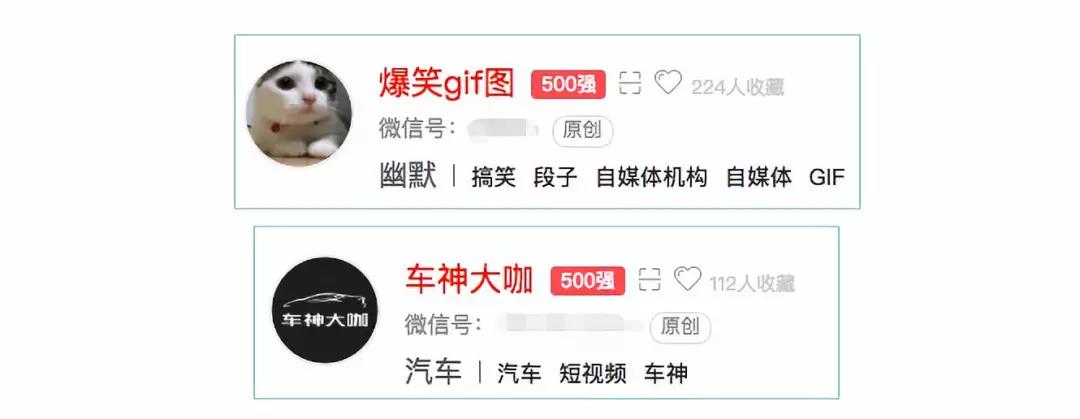 其中我们做的“爆笑gif图”、“车神大咖“都是都是微信500强的账号,在搞笑类别、汽车类别排名也都很靠前。