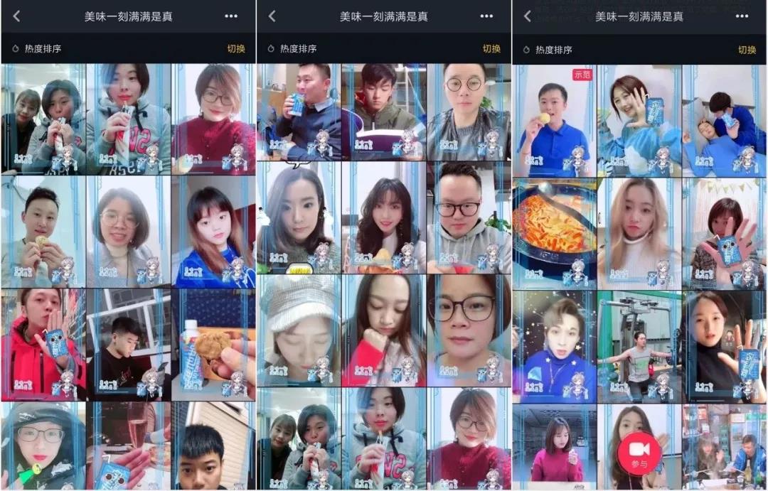 外表甜美的@江离 发挥自身亲和力,配合着BGM完美SHOW出早餐一口面包一口维他奶和吃辣时必备维他奶的喝奶场景。@小步和娇娇 则发挥表演功力,演绎维他奶作为联系情侣感情的好物。通过两位达人的亲身示范,带动大批粉丝参与挑战赛,并触发粉丝自发模仿达人创作出大量高纯度优质内容,加速了#美味一刻满满是真#挑战赛内容的二次裂变扩散。