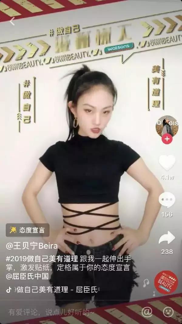 在洞察到这一点后,这个新春伊始,屈臣氏就联手抖音商业化打造#2019做自己美有道理 挑战赛,通过UGC活动让用户主动理解和传播品牌态度,同时鼓励每一个爱美的小姐姐面对真实的自己,探索美的无限可能。
